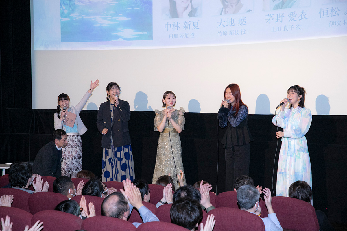 第1話〜第4話上映後のステージに登壇したのは、中林新夏さん(田畑若菜役)、大地葉さん(竹原絹枝役)、茅野愛衣さん(上田良子役)、恒松あゆみさん(伊吹桂子役)。それぞれが作品に寄せた思いを語ったイベントの速報レポートをお届けします。