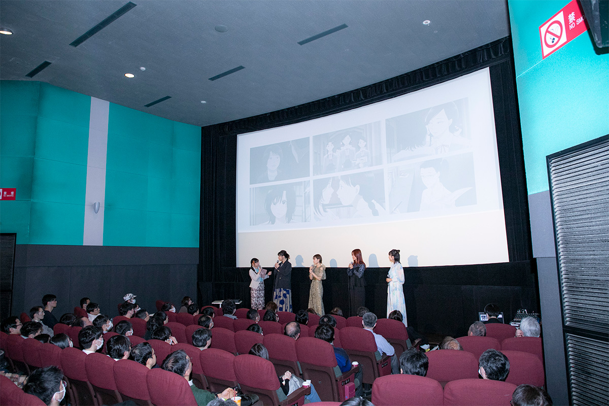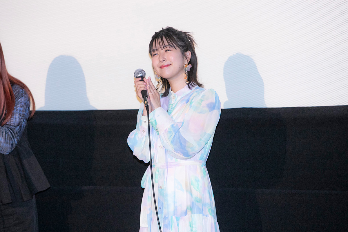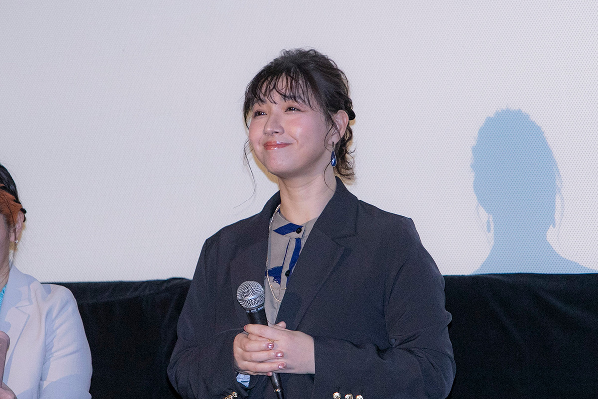 この日MCを務めたのは、原作者・志村貴子先生の別作品『青い花』のアニメで奥平あきらを演じた儀武ゆう子さん。本作と同じ世界観を持つ作品で、登場キャラクターとも繋がる役どころを演じた縁により今回の進行役となりました。